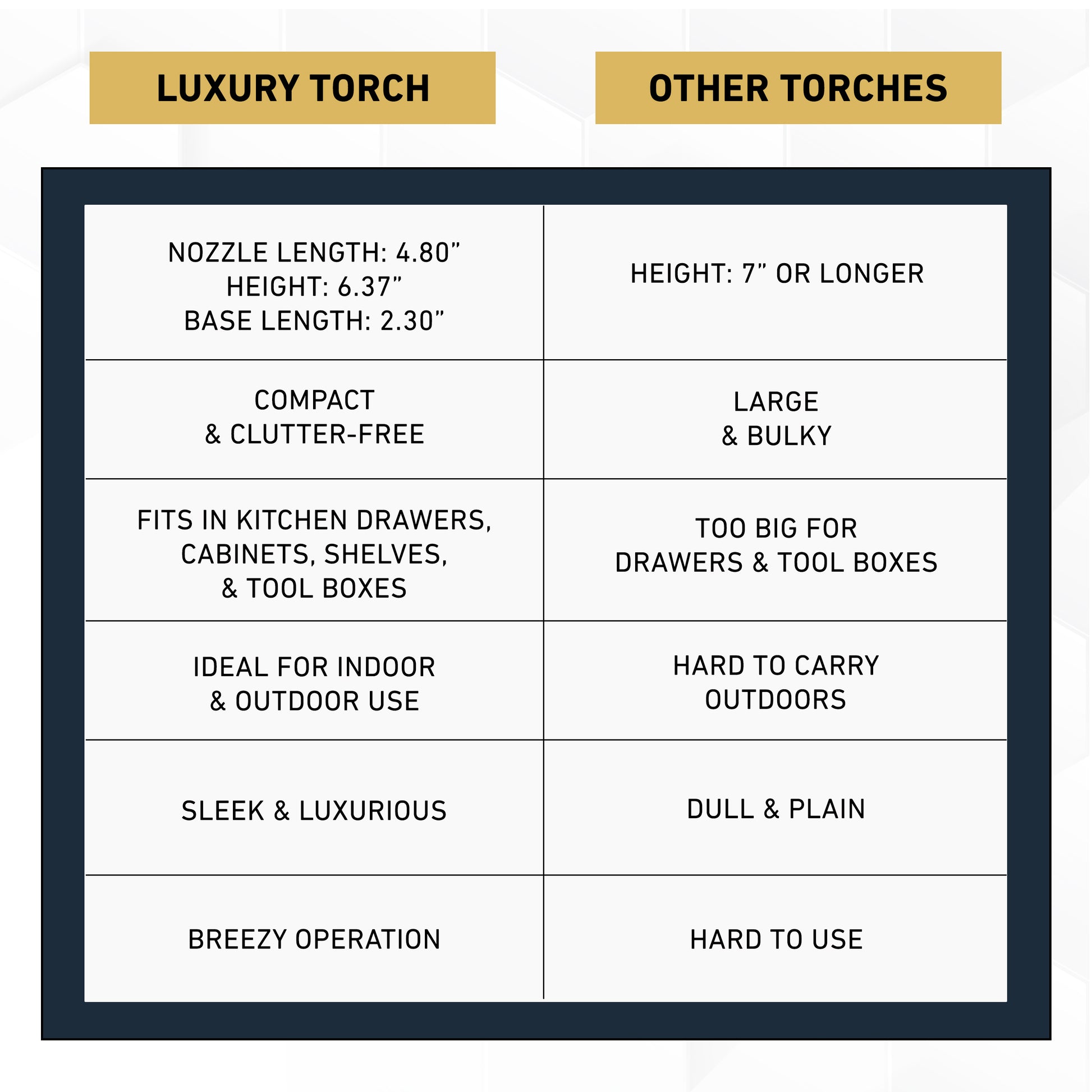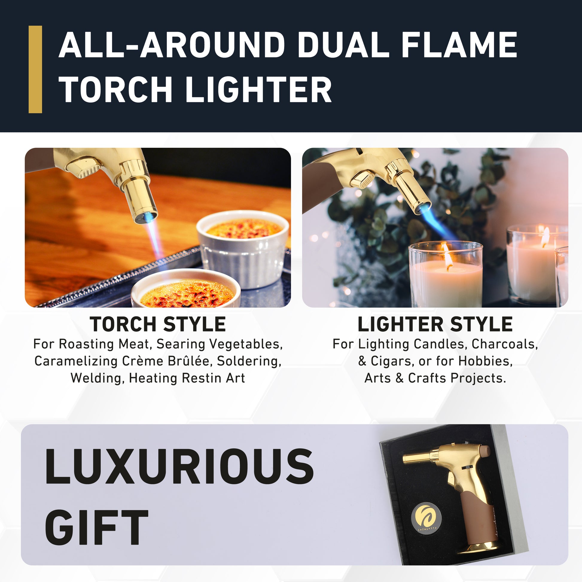 Make your friends' & family's life easier with the perfect gift to fuel their hobby & interest! Our handy kitchen torch comes in a luxurious black packaging that makes it a ready-gift for chefs, bartenders, artists, & craftsmen.